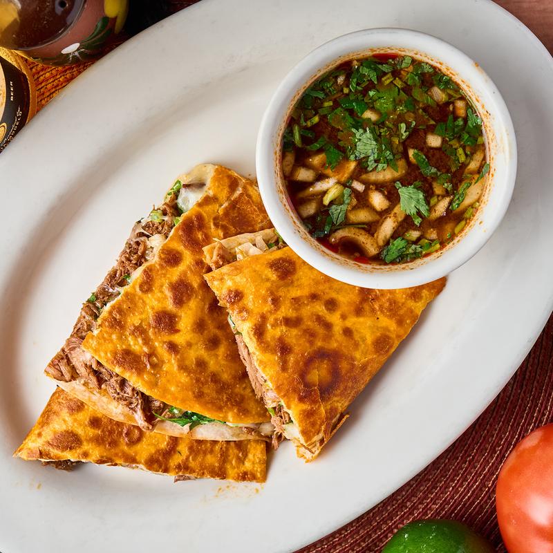 We got the chunky guac and birria pizza. Birria pizza was 10/10, packed with meat, and enough for 3-4 people. Consume here was the best I've ever had!!